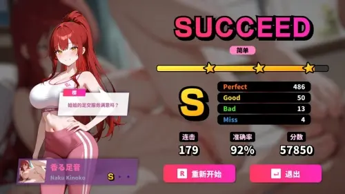 精准判定:在音符抵达中间时,按下对应按键(支持键盘/手柄),触发Perfect//Good/Bad/Miss判定。
